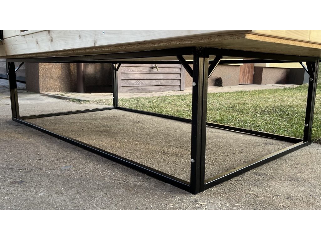 Kurník je vyvýšen na 37cm vysokém ocelovém podstavci, který je opatřen ochranným nátěrem. Slepičky se tak pod kurníkem mohou pohodlně popelit a Vy lépe udržíte prostor v suchu.